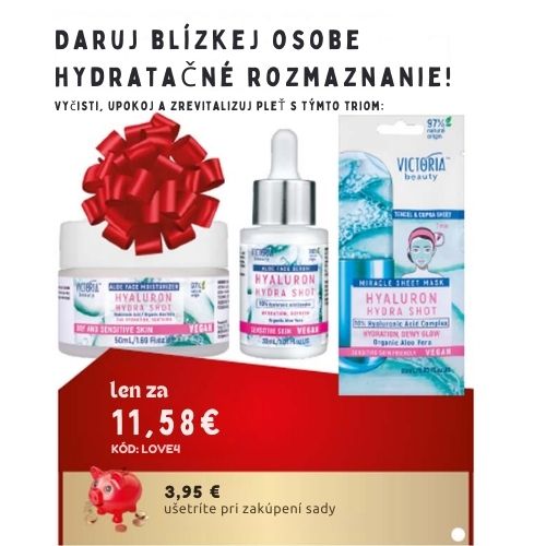 LOVE4 Hyaluron Shot 7 minútová pleťová maska 20 ml + Hydratačné pleťové sérum 30 ml + Hydratačný pleťový krém 50 ml darčeková sada