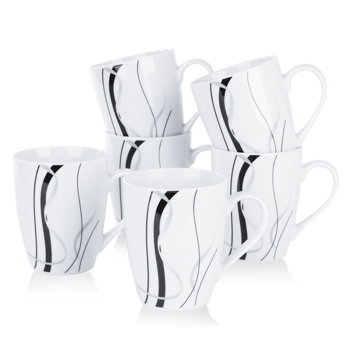 Biely porcelán je dekorovaný čiernymi líniami. Vhodné aj do mikrovlnky alebo umývačky riadu.