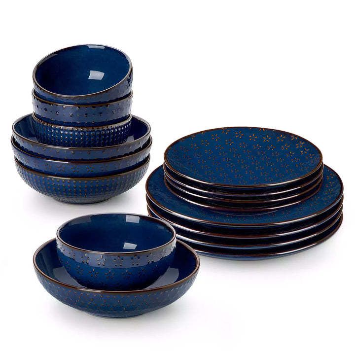 LYDIA Starry Blue Mixed Motif 16-dielna jedálenská kameninová sada