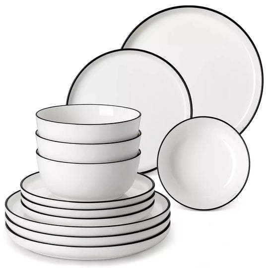 MINA 18 Black Trim dielna jedálenská sada z porcelánu