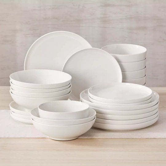 Táto 24-dielna súprava pre 6 osôb prináša kompletný zážitok z kolekcie MINA na váš stôl. Obsahuje 6 plytkých tanierov, 6 dezertných tanierov, 6 misiek na cereálie a 6 polievkových misiek. Zaoblené tvary a jemne vyvýšené okraje vytvárajú pokojný a moderný vzhľad.